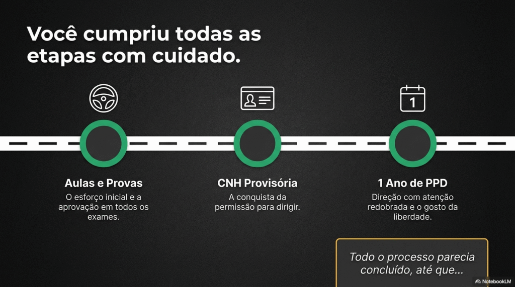Durante esse período de um ano, você tentou dirigir com cuidado, justamente porque sabe que a permissão para dirigir exige ainda mais atenção.