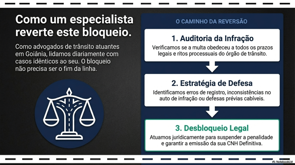 Quando alguém chega com a CNH definitiva bloqueada, a primeira coisa que fazemos é uma análise completa do caso: